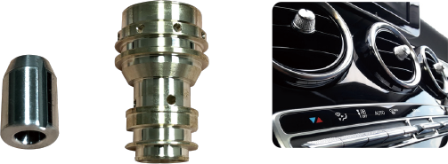カーエアコンのコンプレッサの圧力制御を行う装置に搭載される部品です。空気の流量を制御する為、厳しいクリアランスが要求される部品です。